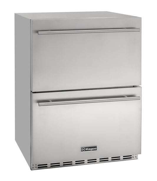 Kegco 24" Wide Outdoor Built-In Stainless Steel Commercial Two-Drawer Refrigerator