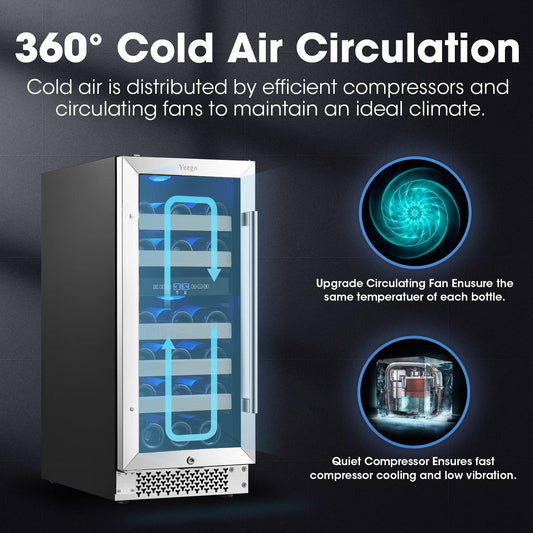 Yeego 15 Inch Wide 28 Bottles Dual Zone Narrow Small Wine Fridge, Under Counter, Built-In or Freestanding