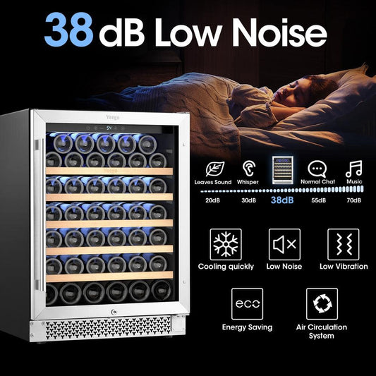 Yeego 24 Inch Wide 52 Bottle Wine Fridge, Quiet Wine Cooler Under Counter or Freestanding