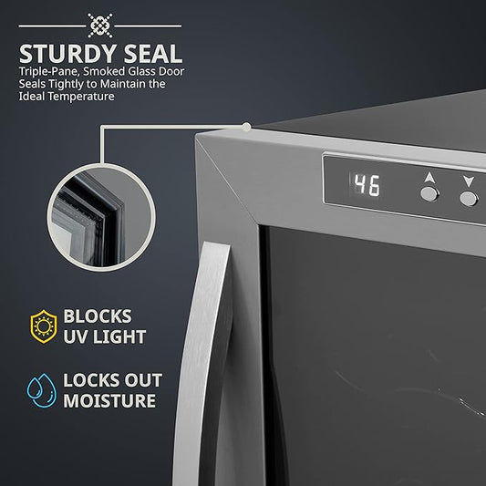 Ivation 24 Bottle Compressor Wine Refrigerator, Freestanding Wine Cooler with Lock, Stainless Steel